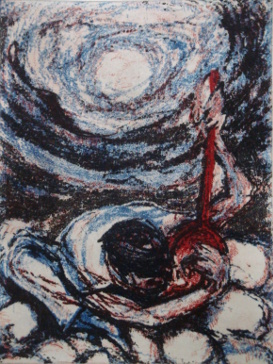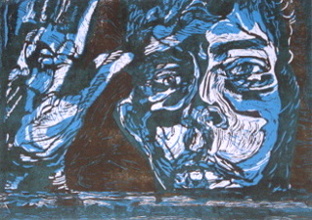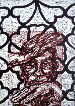 Siddhartha1, Woodcut 2 Colors, 80x60cm, 2012 |