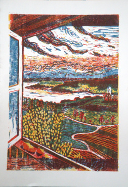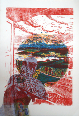 Heimatsanmutungen2, Woodcut 3 Colors, 50x35cm, 2020 |