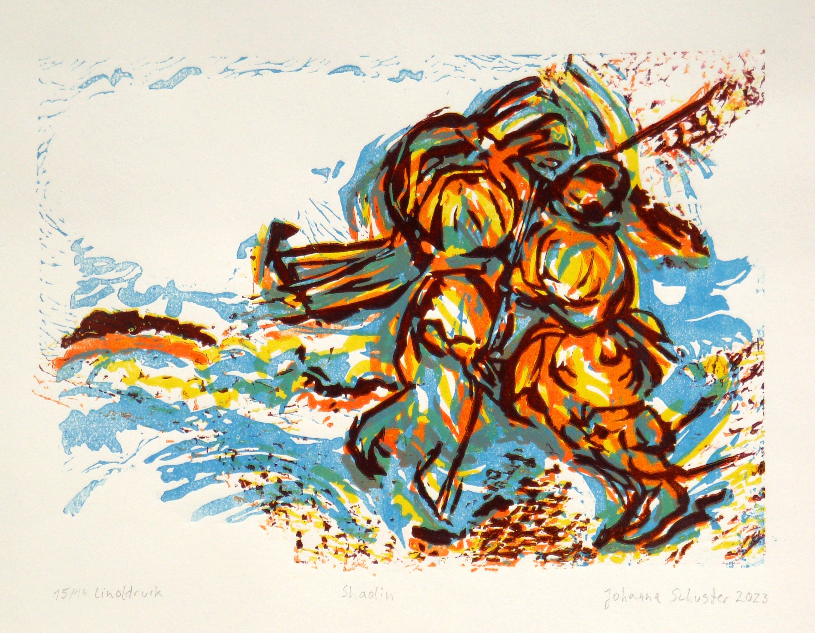 Shaolin1, Linocut 4 Colors, 35x25cm, 2023 |