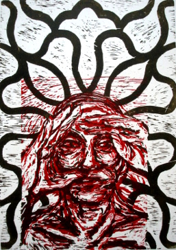 Siddhartha2, Woodcut 2 Colors, 80x60cm, 2016 |