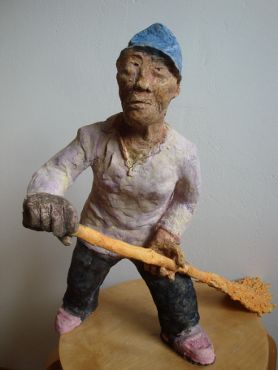 Arbeiter3, Acrylic on fired clay, height ca.50cm, 2013 |
